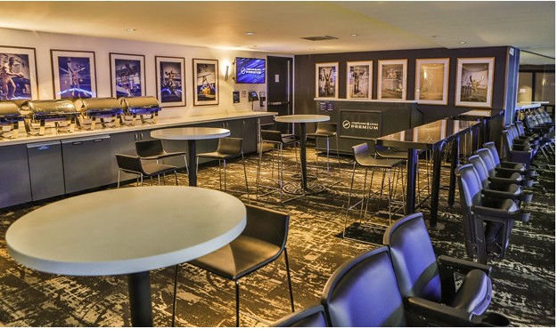 This project highlights the luxurious amenities and elegant decor of a sports suite, featuring leather seating, buffet setup, and scenic wall art. The images showcase the sophisticated ambiance and attention to detail in the suite's design.